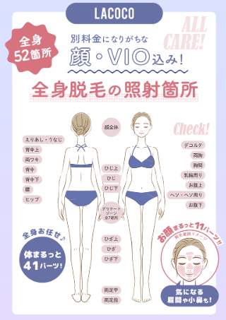 最新の機械を導入されており、 痛みが無くあらゆる毛に対応していて、短時間で済むというところも魅力的でした。他には予約が取りやすい点、そして私の最寄り駅から通うのに電車一本で行けるという点 、卒業までの期間がダントツに早いという点、他店よりも圧倒的にリーズナブルな価格設定であるという点、そしてラココの口コミが総体的にかなり高評価で雰囲気も良さそうで効果を即実感できそうに感じたので、総合的な面において他のサロンよりも圧倒的に魅力を感じたのでラココに即決致しました。